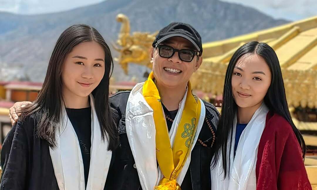 | Aktor Jet Li (C) dan putrinya Jada (jauh K) dan Jane. Foto dari Instagram Li |