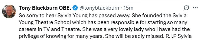 Ucapan belasungkawa telah mengalir untuk Syliva. Legenda radio Tony Blackburn menulis: Sangat sedih mendengar kematian Sylvia Young. Ia mendirikan Sylvia Young Theatre School yang telah membuka banyak karier di TV dan Teater.